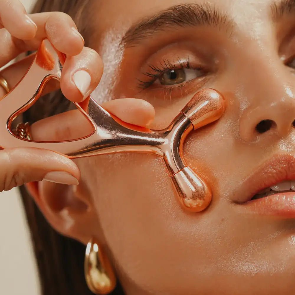 Introducing the new 3X Sculpt Facial Tool, the ultimate facial tool that offers endless sculpting benefits. With each gentle glide across your face, neck, and shoulders, this rose-gold tool visibly tones, chisels, and stimulates your skin, unveiling a new level of definition and radiance that lasts throughout the day.