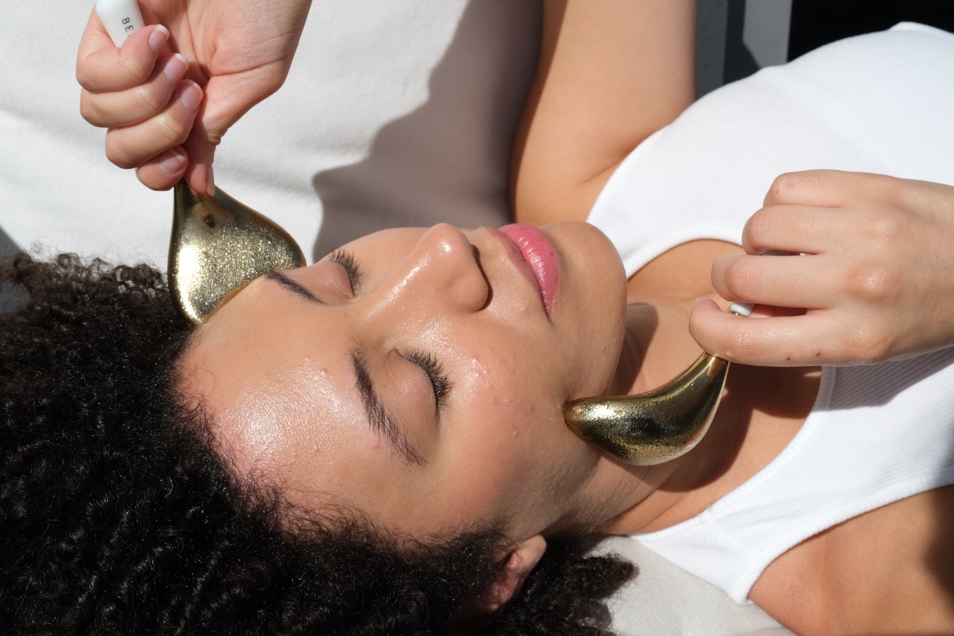 Repeat motions on both sides along the contours of the jawbone, cheekbones, brow bone, forehead, undereyes, and nasolabial areas for 5-10 minutes.