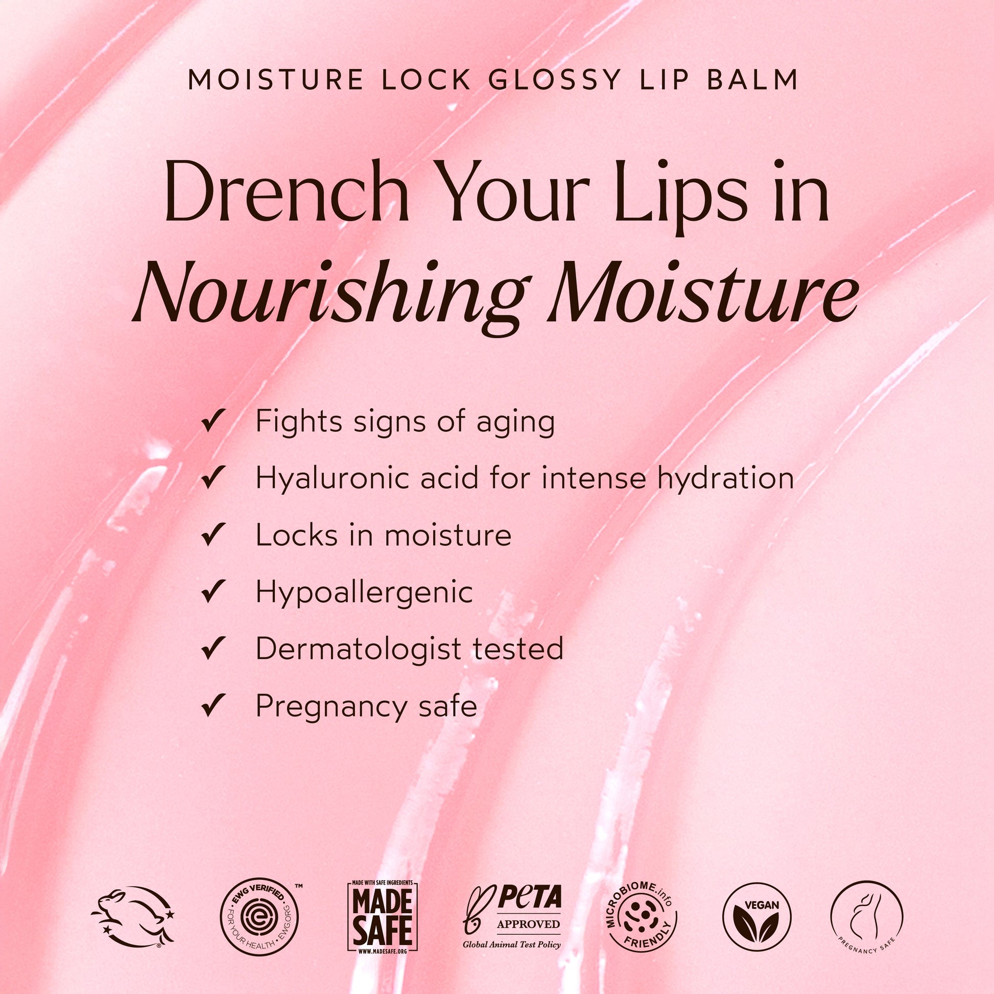 Apply the Moisture Lock Glossy Lip Balm on top of your favorite lipstick for a hydrating pop of shine, or wear it alone for a naturally glossy finish.
