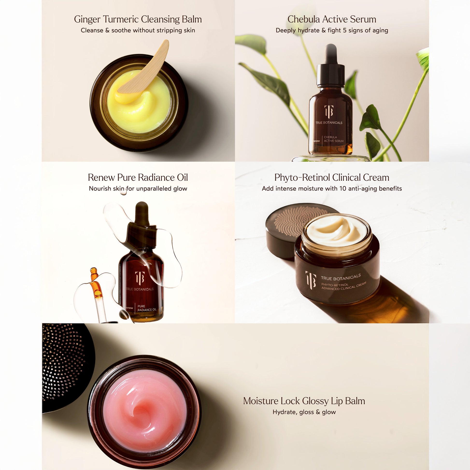 The Tried & True Skin Wellness Essentials Set is the ideal set to try our best sellers that center skin. Perfect for cleansing, treating, regenerating, and nourishing on the go. The set includes five travel sizes. We sourced the most sustainable, wild-harvested versions of ginger and turmeric for their most bioactive potency. This multi-tasking cleansing balm effectively removes makeup, sunscreen, and impurities—but not moisture! The wrong cleanser with harsh surfactants can damage the skin barrier, and that’s why, at the heart of this formula, is hydro-distilled, skin-soothing organic turmeric and ginger root—to soothe, brighten, and help dull, overworked skin, all while protecting its barrier.
